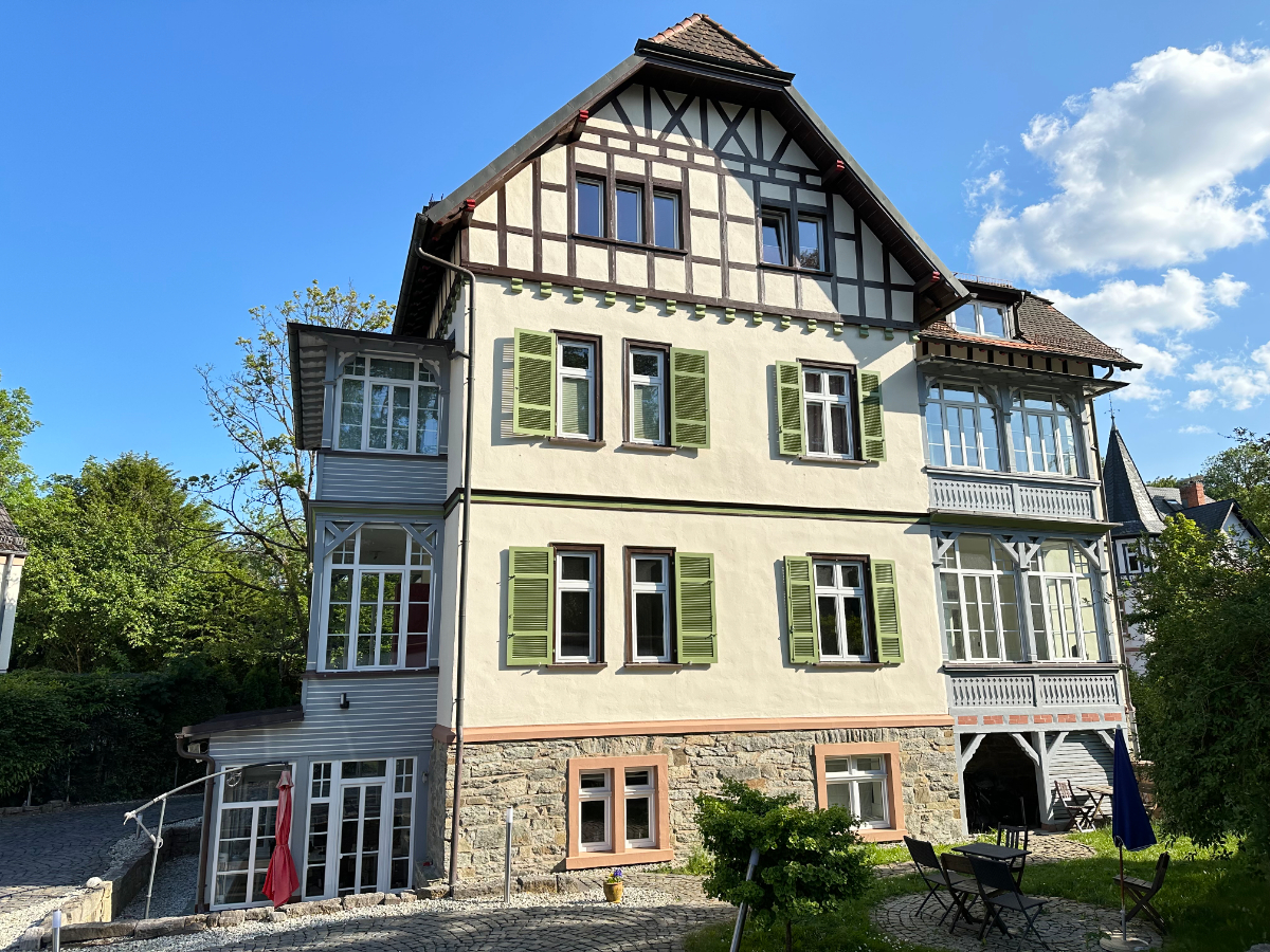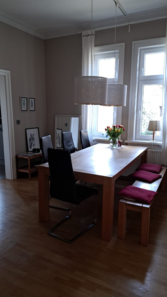 Die großzügige Etagenwohnung befindet sich im 1. Obergeschoss in einer liebevoll sanierten Jugendstilvilla aus der Jahrhundertwende (1900).